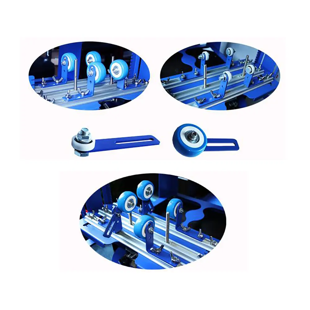 6. Stojak na skrobak drukarski i stojak na atrament zwrotny są typu klipsa z podwójną płytką, instalacja i rozładunek są wygodne i szybkie, dwie strony ramy głównej i ramy łączą środkową dodatkową sprężynę śrubową, w procesie drukowania użytkownik może dostosować skrobak drukujący i docisk powrotnej płyty atramentowej w zależności od potrzeb.