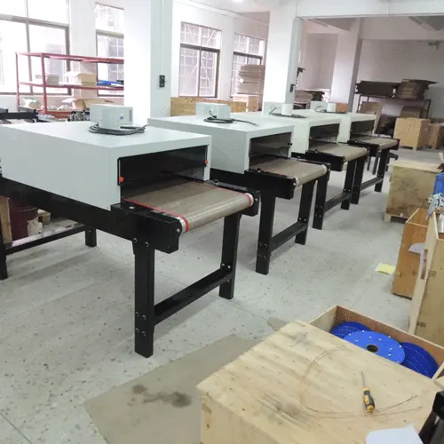 Funkcja *Cały obszar roboczy można dostosować. *Temperaturę i prędkość roboczą można regulować *Cyfrowy miernik prędkości umożliwia operatorowi dokładne dostosowanie prędkości roboczej *Elementem grzejnym jest rurka z węglika krzemu, która posiada wysokowydajne źródło światła do suszenia ubrań, a wentylator wyciągowy eliminuje zadrapania na zewnątrz *Nadaje się do suszących próchnicowych rodzajów farb drukarskich do tekstyliów, takich jak tusz plastizolowy, tusz drukarski na żelu krzemionkowym, pasta i tusz na bazie wody. |